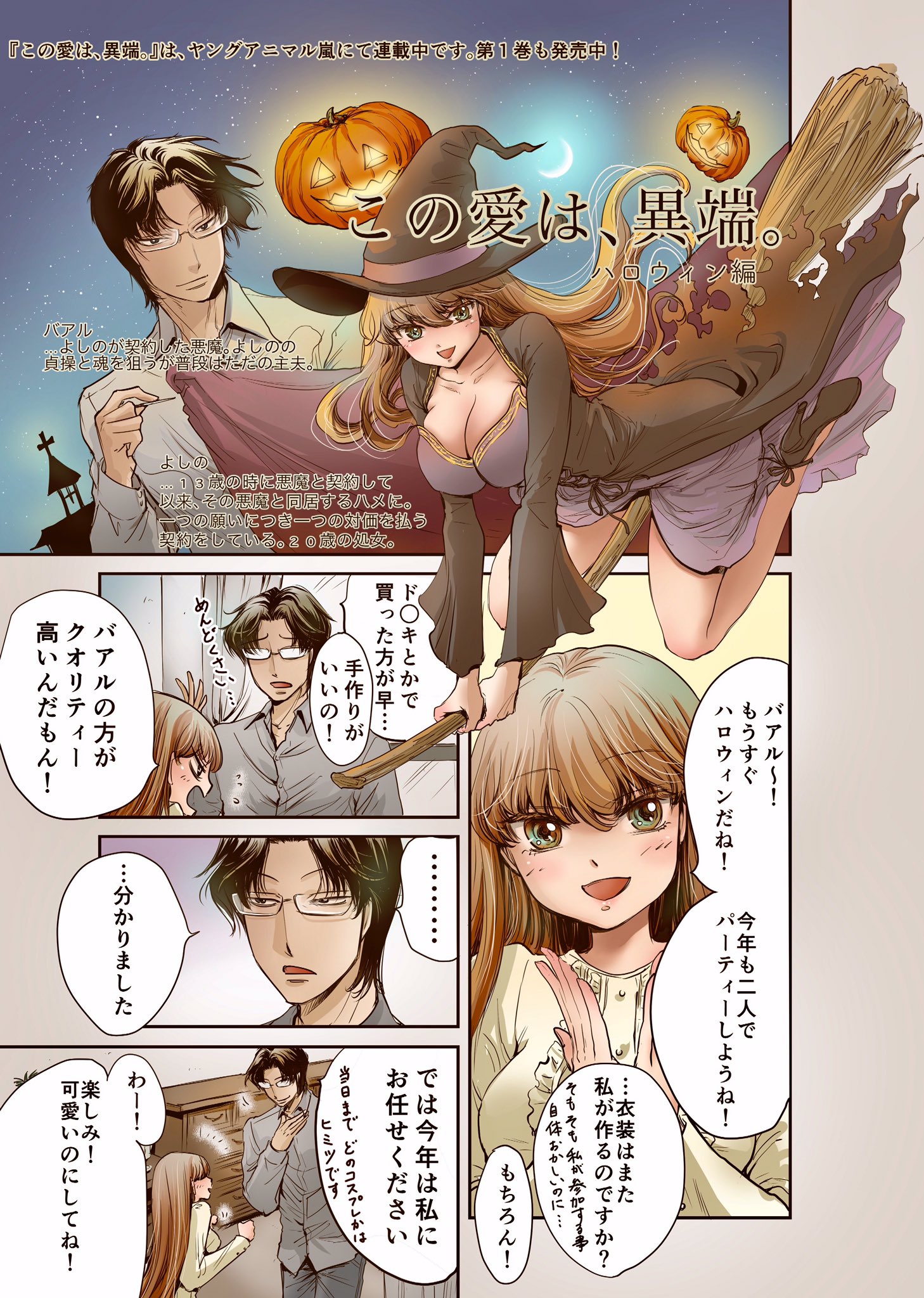 Halloween RT @moriyama_ena: Happy Halloween! 去年描いたもので申し訳ないのですが再掲します(^^) 『この愛は、異端。』第1巻発売中です! https://t.co/eYSebdbhnu